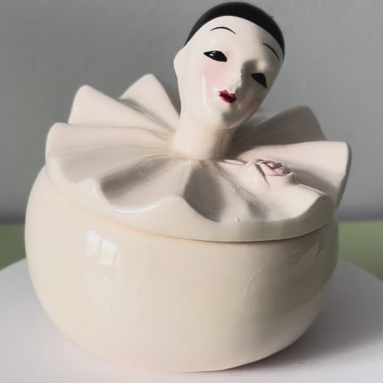 Très jolie boîte à bijoux Pierrot en porcelaine blanche