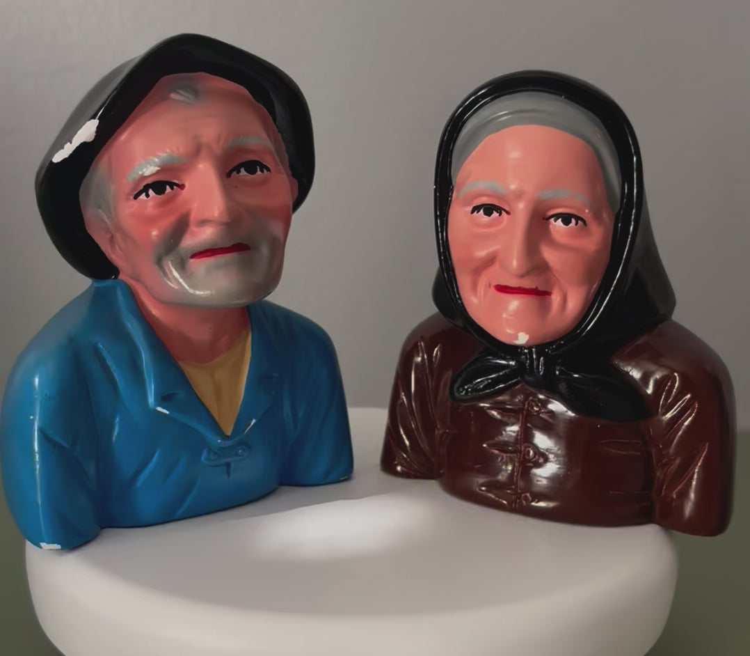 Bustes en plâtre de deux personnes agées signés A. Pene - Lourdes