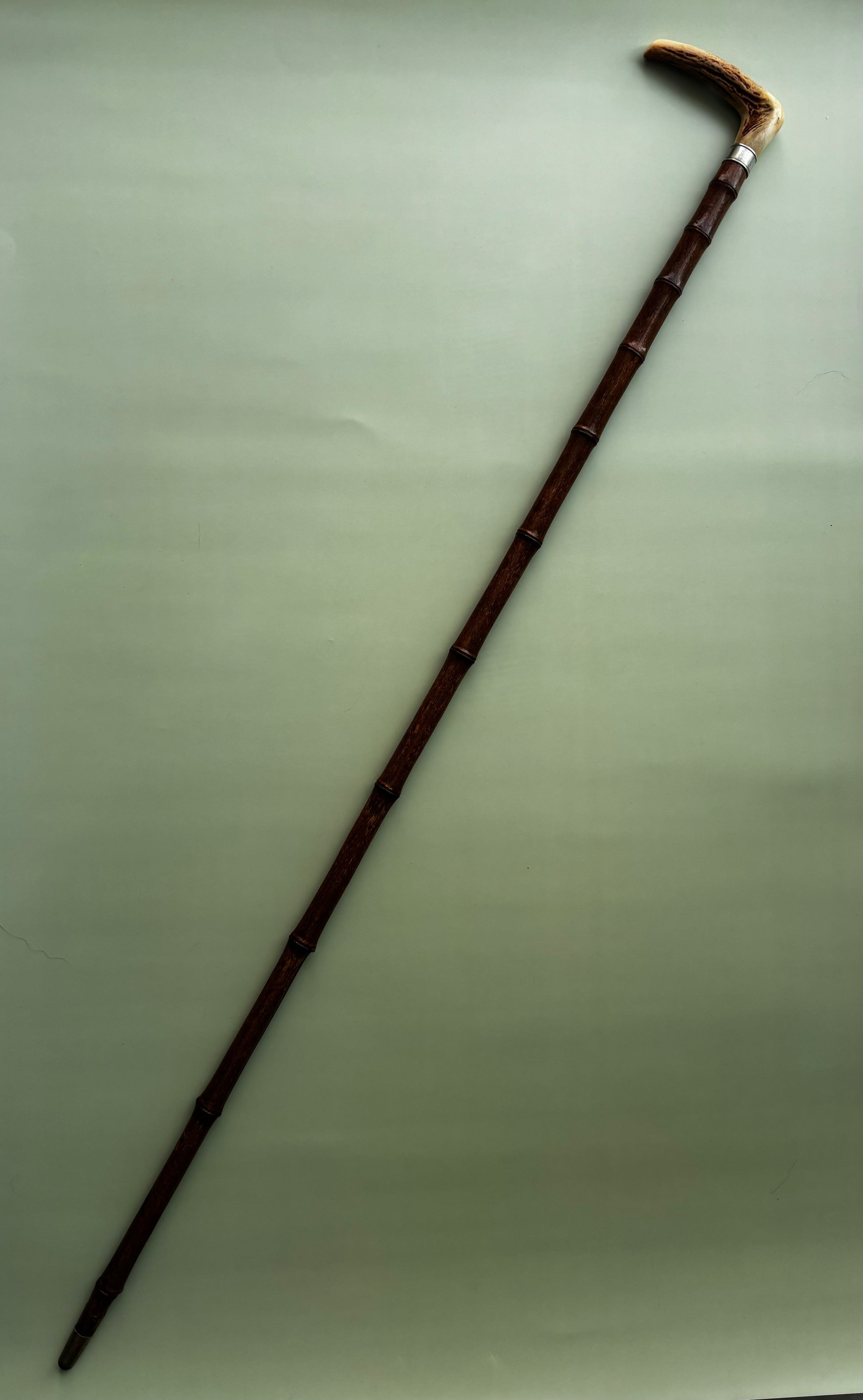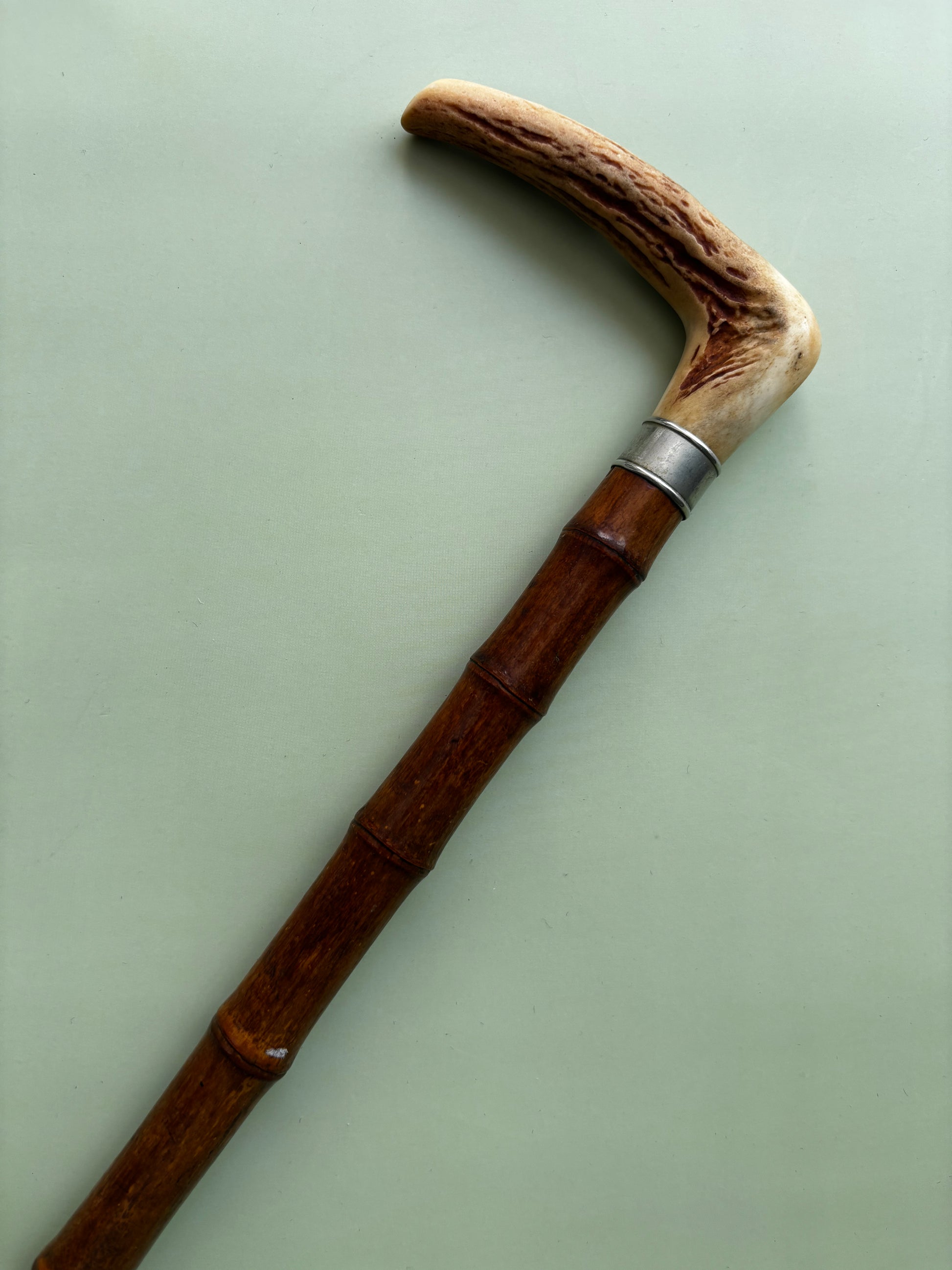 Canne en bois verni avec une poignet équerre en bois de cerf