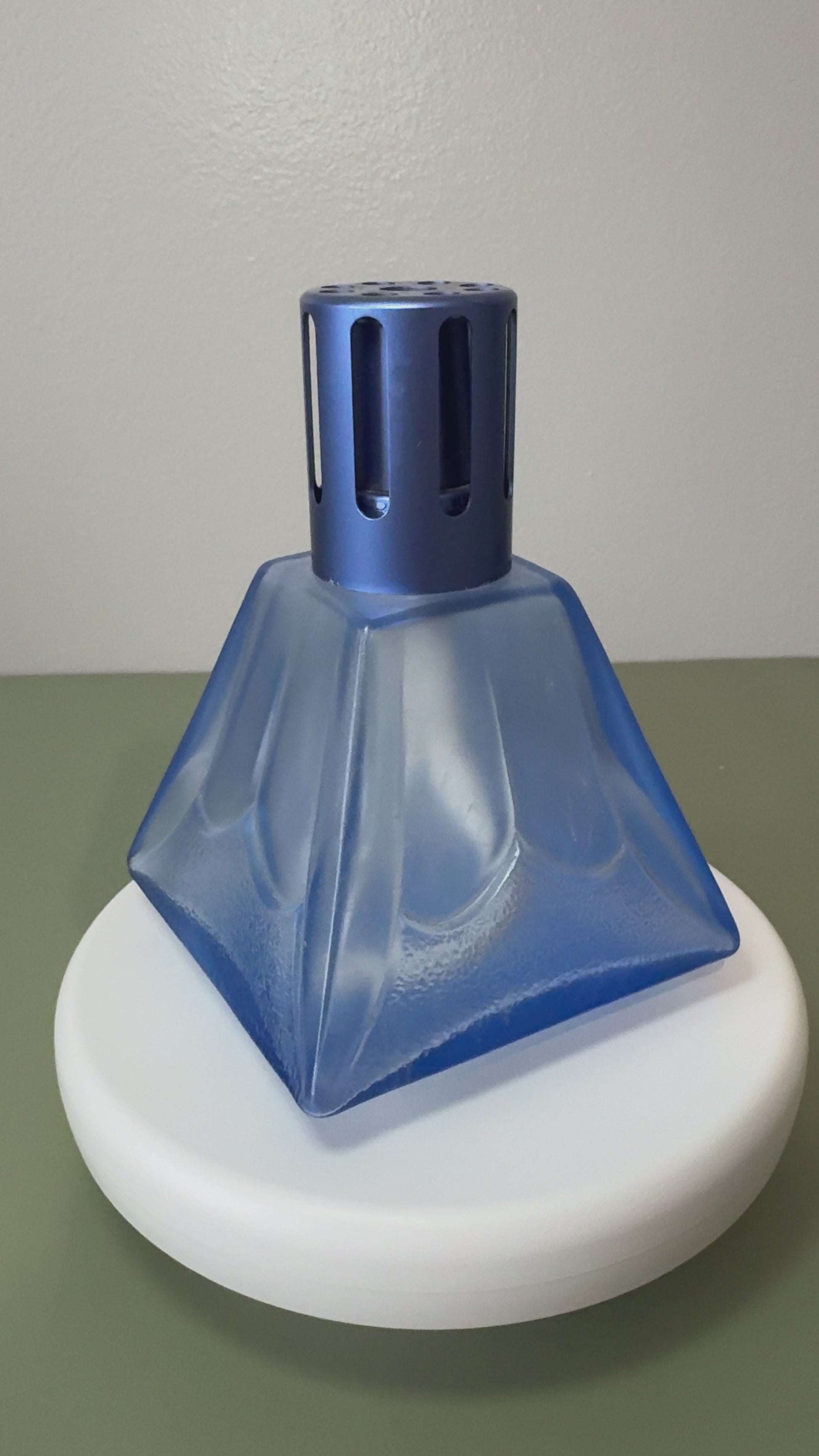 - Lampe à huile de couleur bleue sous forme de pyramide.