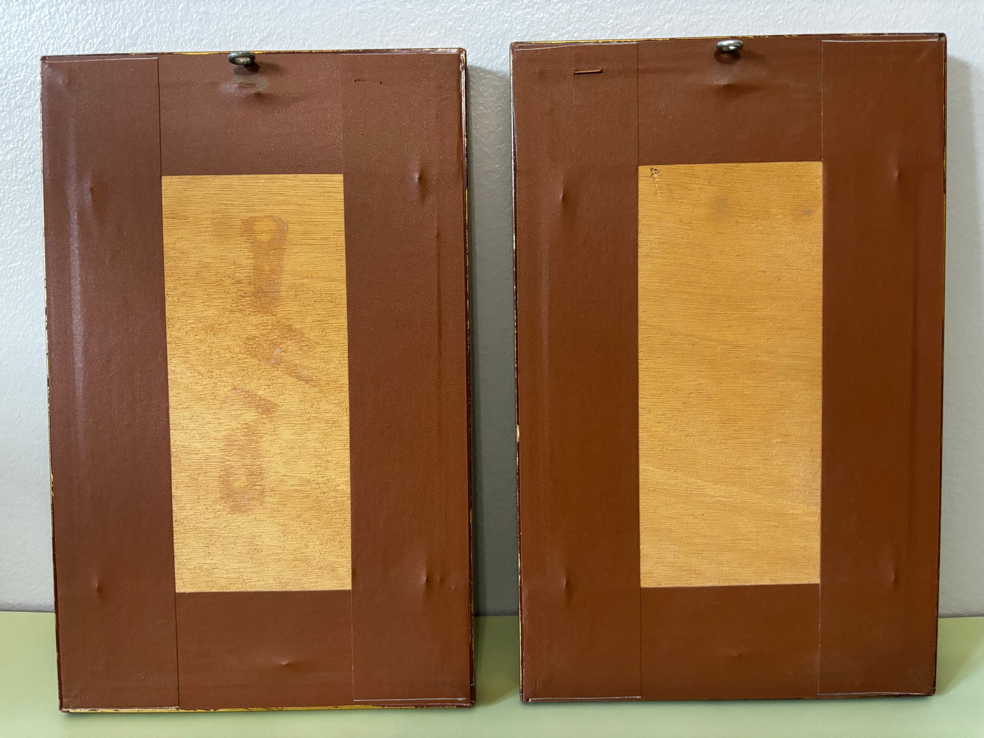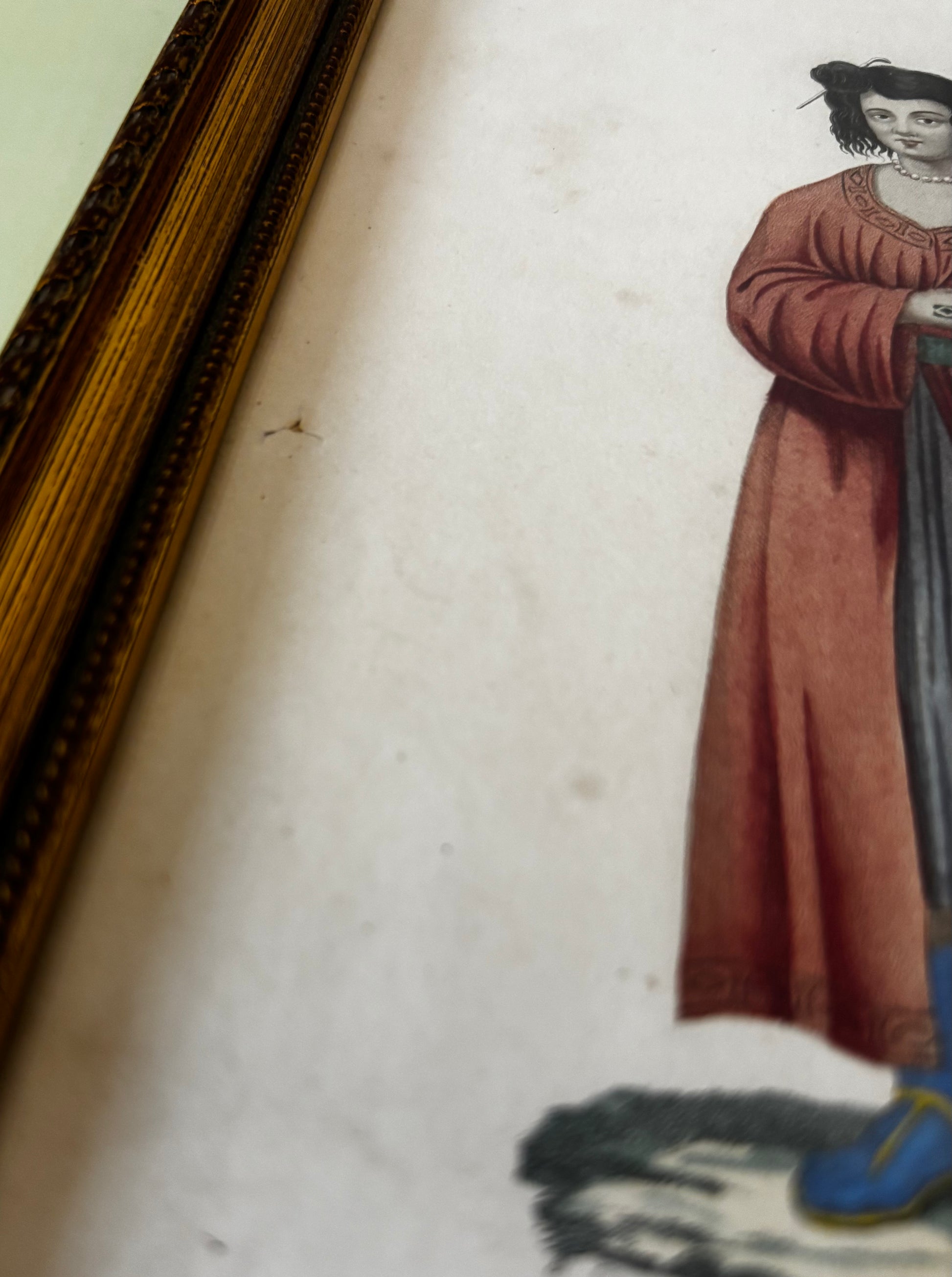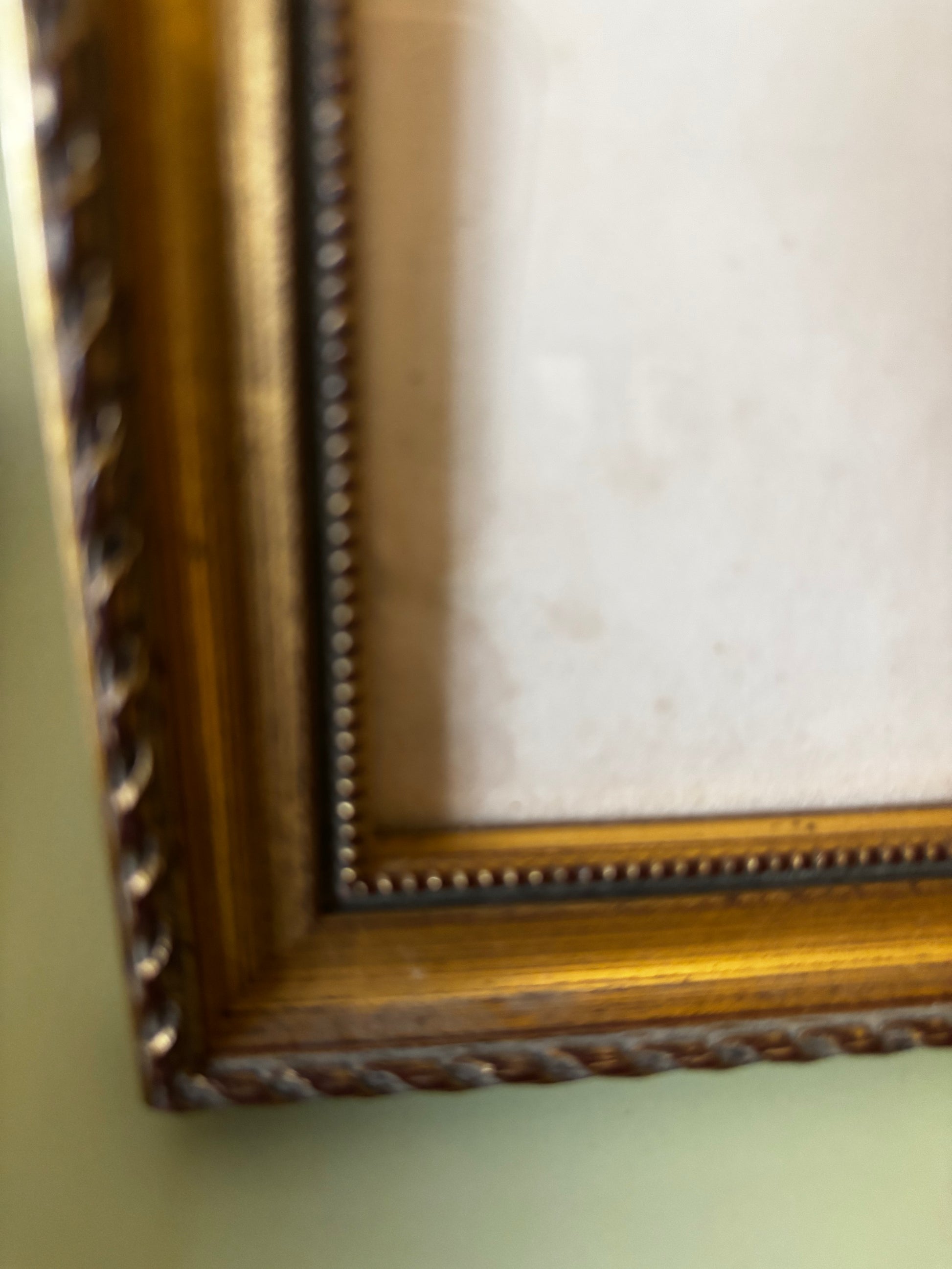 - Trace de vieillissement sur le papier et petite perforation pour le cadre de la femme