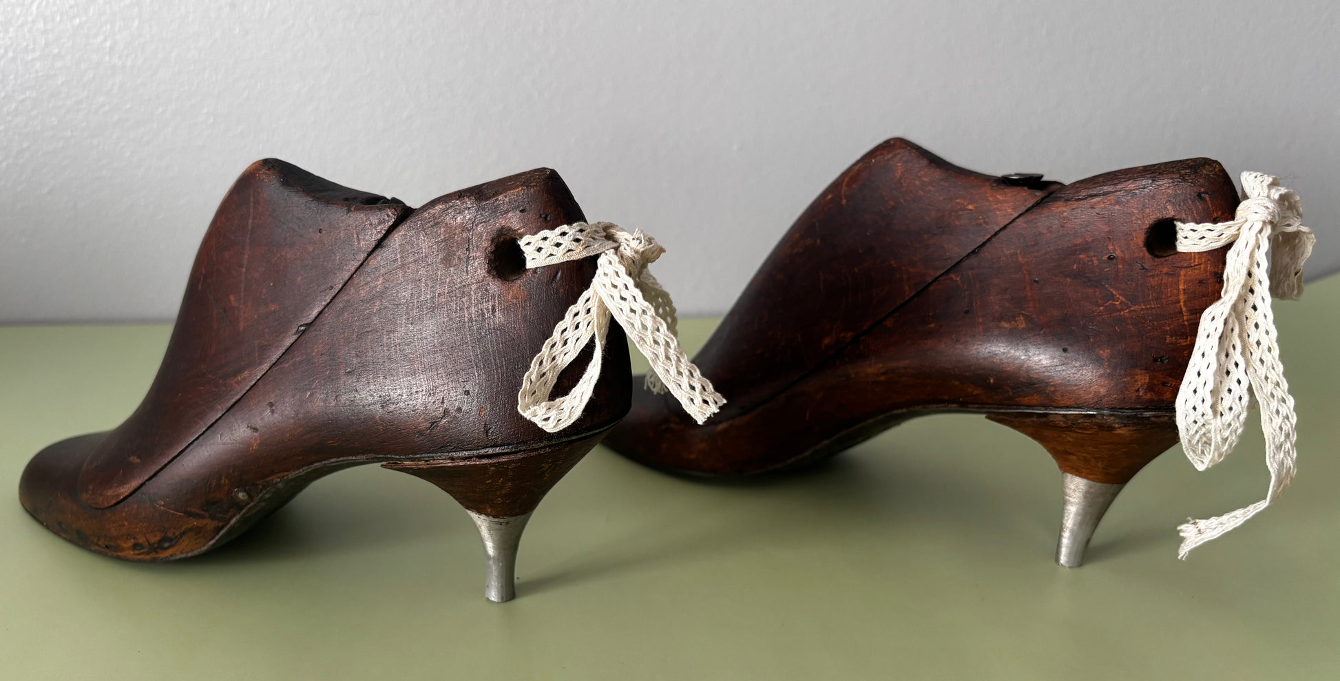 Très jolie paire de chaussures en bois, dits embauchoirs, à talons, utilisés par les cordonniers