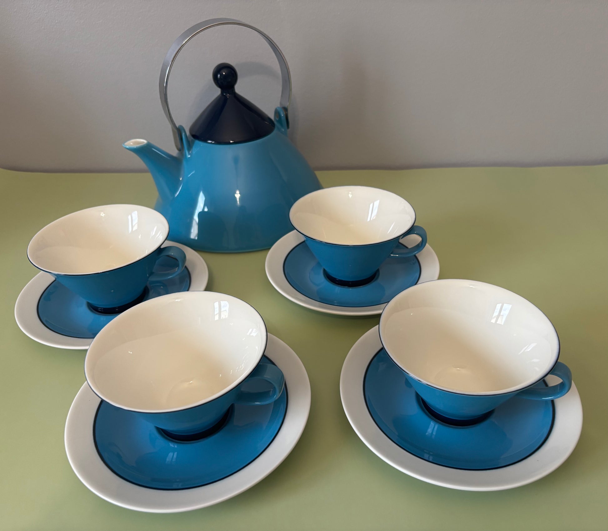 - Le service est composé de 4 tasses et sous-tasses et d'une théière, le tout en très bel état