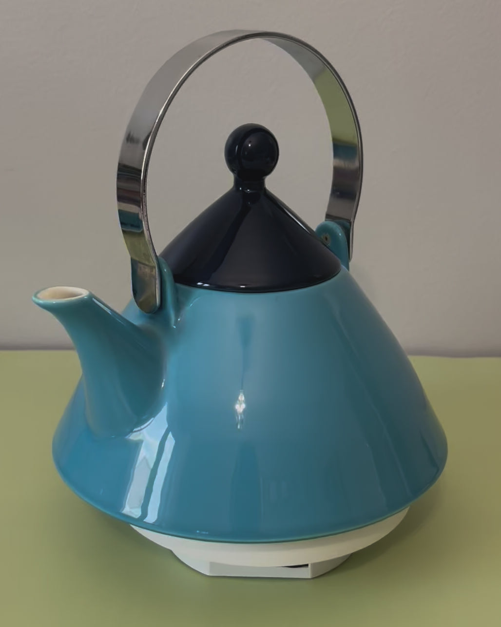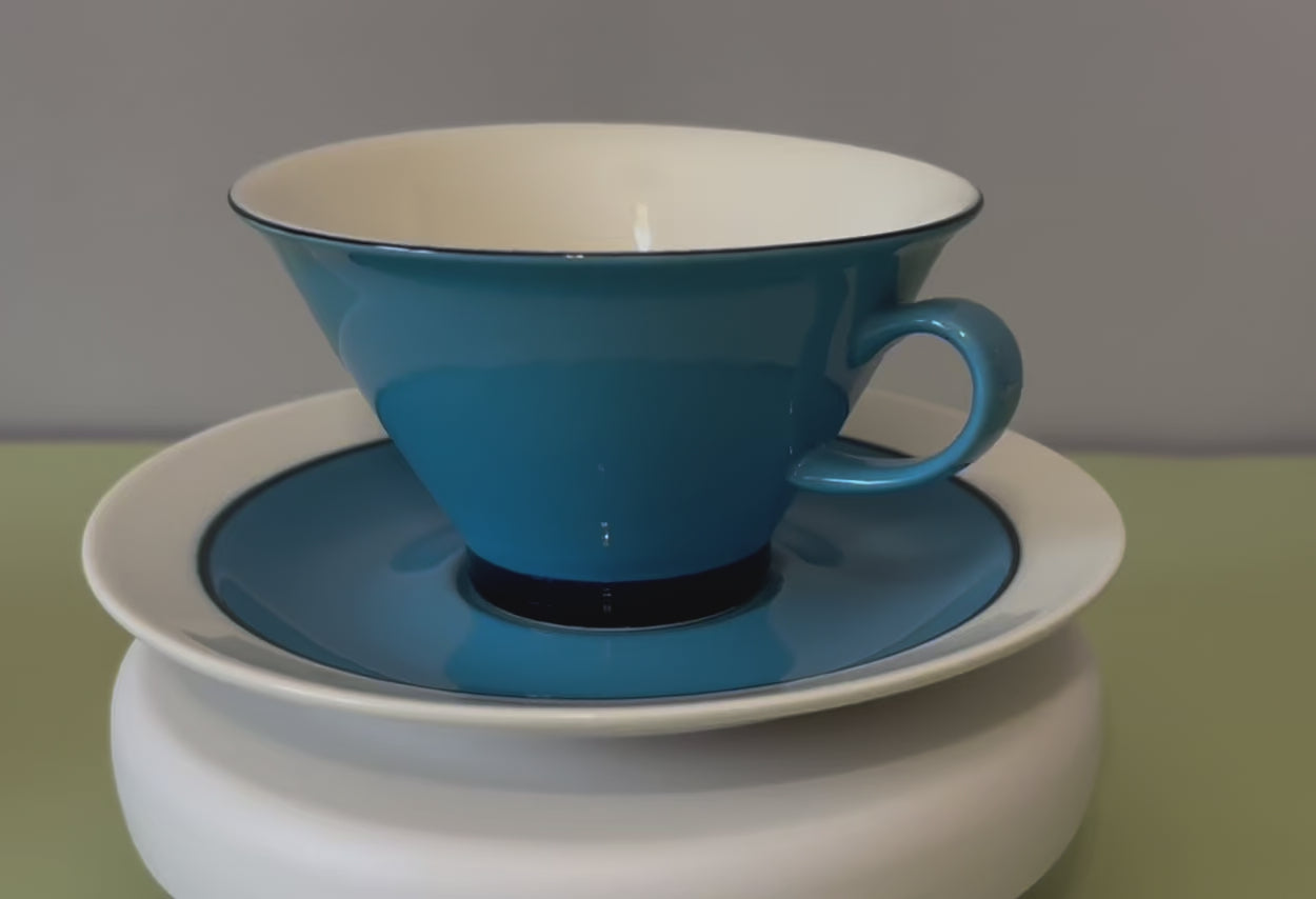 - Elle est connue pour ses formes simples mais élégantes, et ses couleurs franches. Le bleu ciel de cet ensemble est une des déclinaisons les plus recherchées.