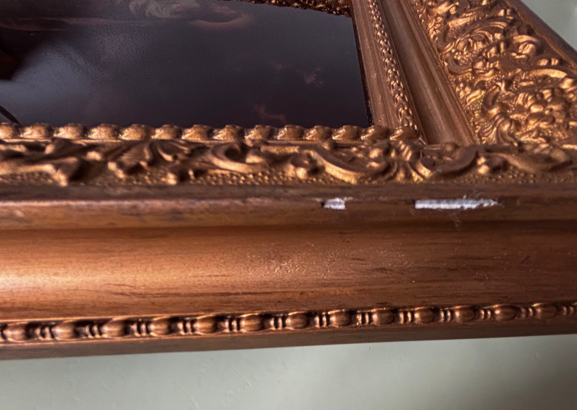 Très jolie peinture sur verre dans un cadre doré